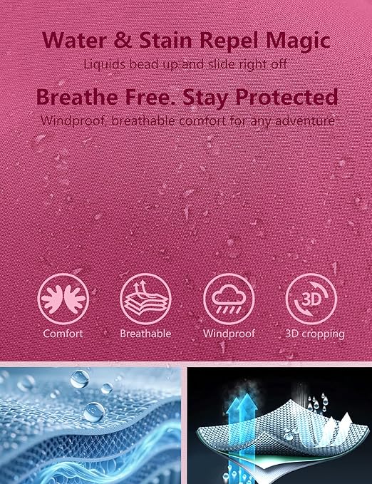 - BREATHE EASY WITH ALL-DAY COMFORT: Experience unparalleled comfort with our breathable and windproof fabricThe articulated feminine cut allows for full freedom of movement without the bulk, keeping you perfectly dry, comfortable, and looking sleek all day long.